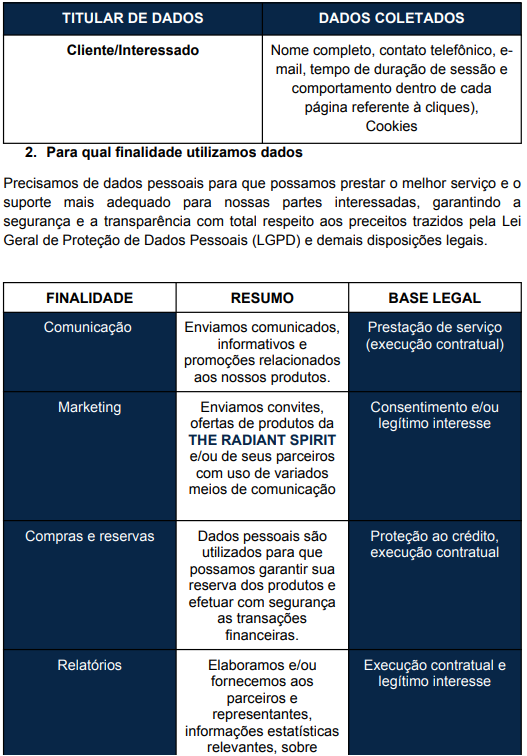 sempre à sua disposição. Basta contatar nossa central de atendimento ou conversar diretamente com nosso responsável de privacidade pelo e-mail: “privacidade@theradiantspirit.com.br”